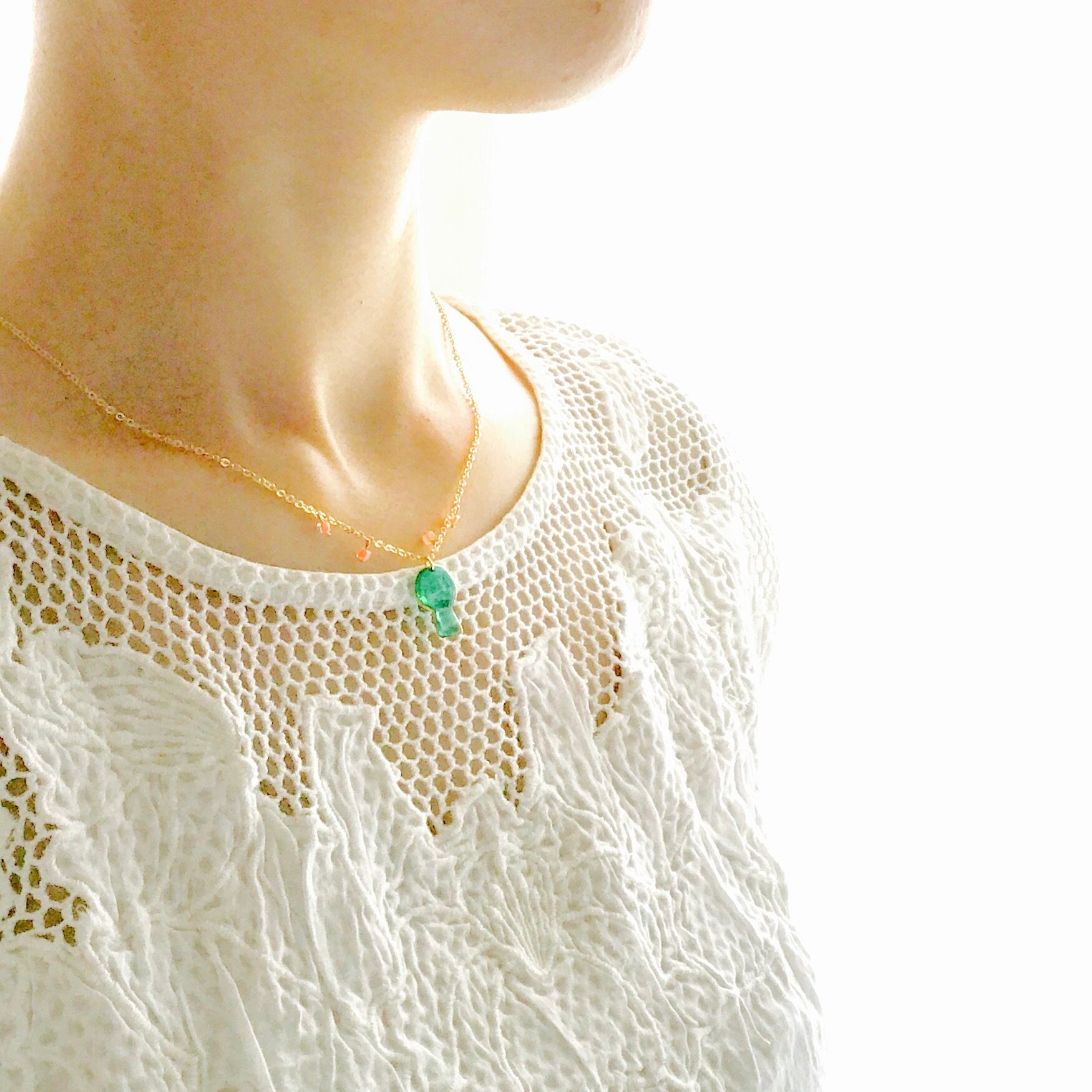 蛍光色のビーズはピンクとイエローの2種類で、シンプルだけどポイントのあるデザインに。